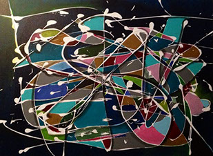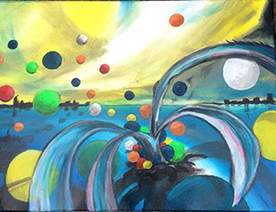 Titel: Bunter Vogel; Grösse: 50x40; Acryl auf Hartkarton Datum: April 2015